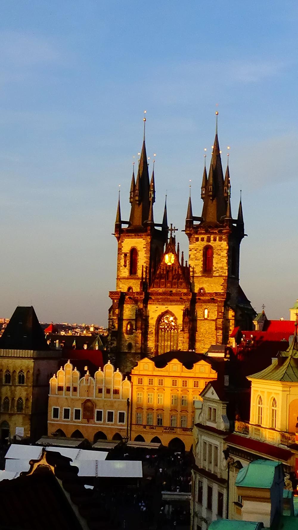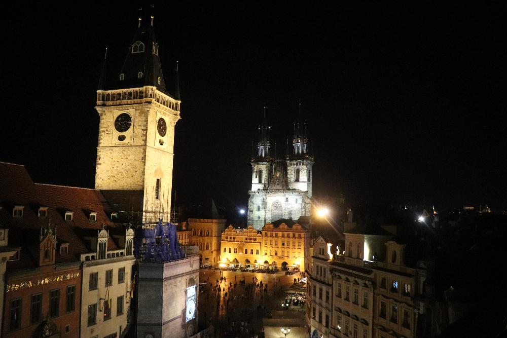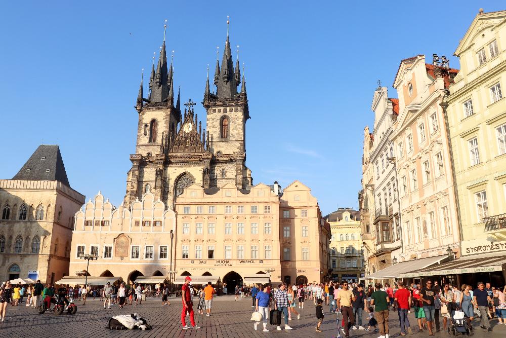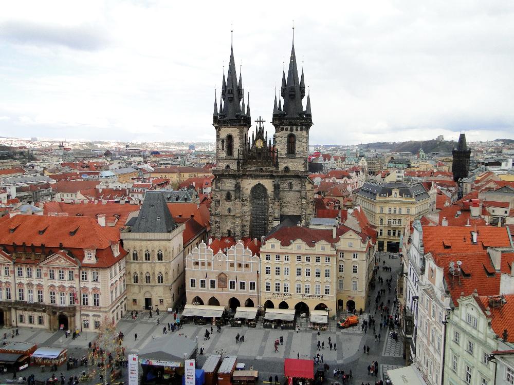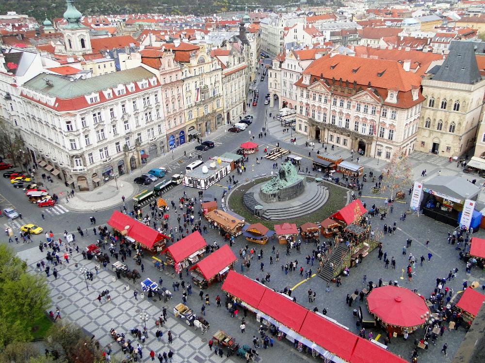 - Old Town Square, the heart of Prague historical centre. It has been beautifully restored and it is a good place to start your Prague visit. You will find the Gothic spires of the Týn Church towering over the square and the statue of reformer Jan Hus, and the Astronomical Clock on the Old Town Hall on the opposite side of it. You can climb to the top of the Old Town Hall tower. The view of the square and beyond is spectacular.
