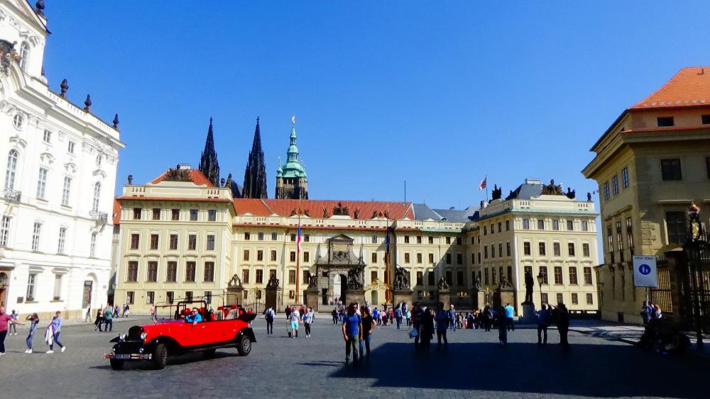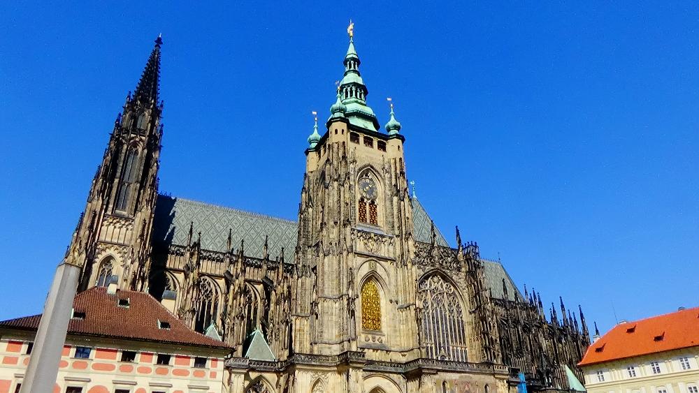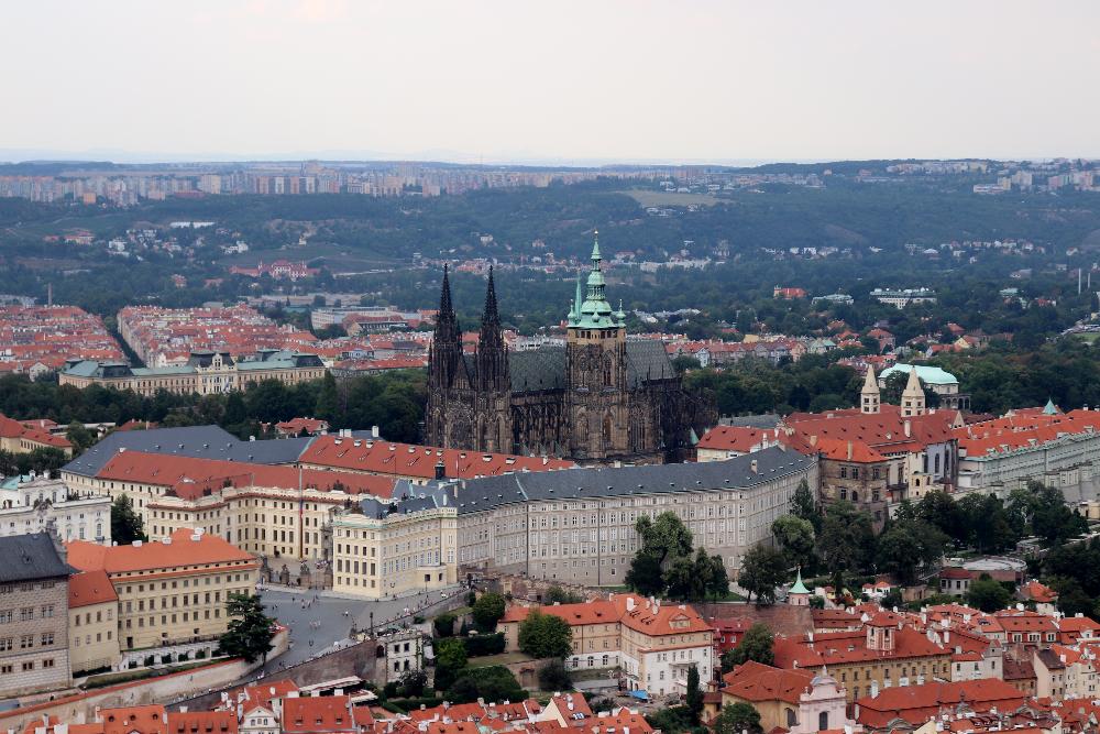 - Prague Castle, you will not find one single castle on the hill, but a series of buildings, a few churches and hundreds of years of history. Before walking through the castle entrance, walk around to your right for a nice view overlooking Prague. To get there the best idea is to cross Charles Bridge on your way, walk straight up the hill via Nerudova street and you will soon reach the Castle grounds.