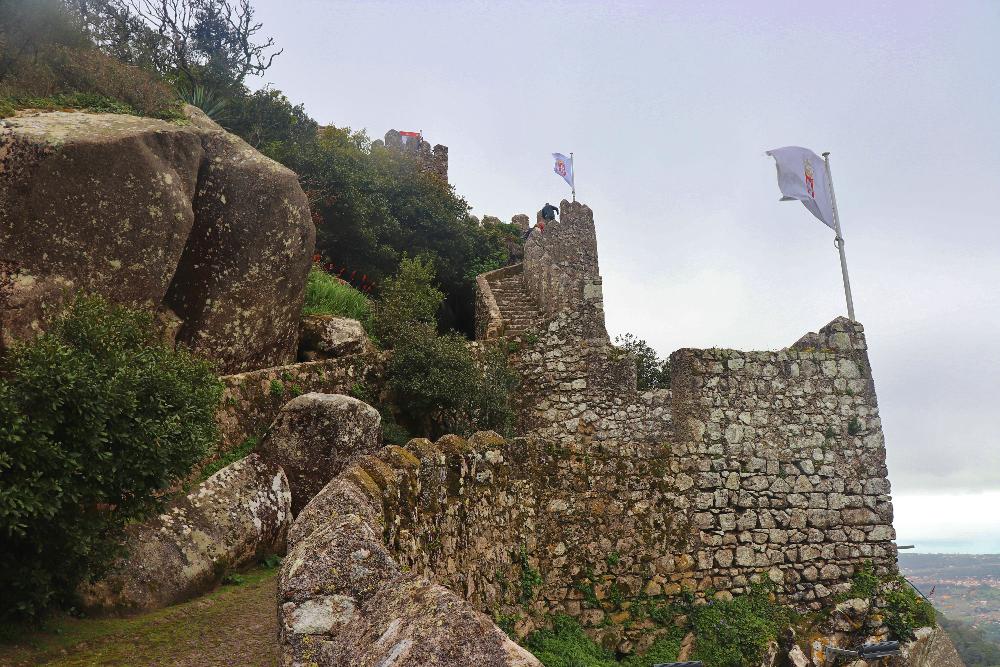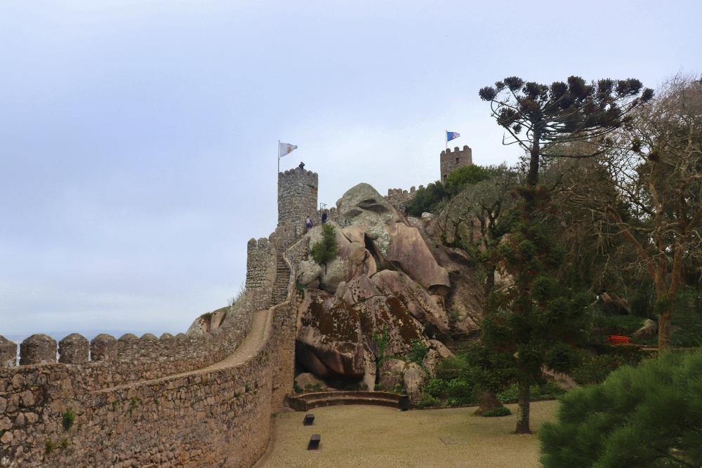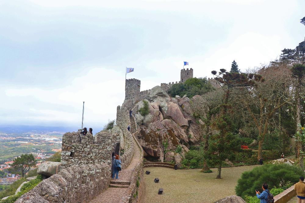 The main highlight of Sintra, is its Moorish Castle, at the top of the hill, built as a military fortress around the tenth century by the Muslim occupiers of the Iberian Peninsula. It acted as a watchtower over the Atlantic Coast and the northern territories, functioning as an observation post of the city of Lisbon. To access it you can walk up a well built trail to the mountain, taking 45 min upwards. The walk has many interesting stops along the way, with many viewing points, WC, cafe, authorised climbing spots and well singed posted along the way. Another option is to take Tuk-Tuk style rides to the top, but they often overcharge. However coming back it only costs €5 when you share the ride down.