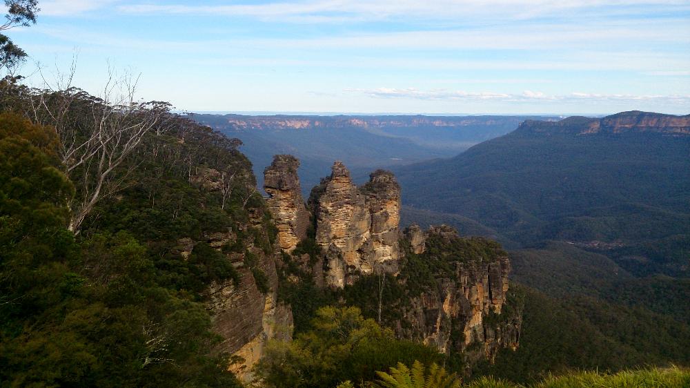 The Blue Mountains are highly recommended to visit within a day trip. Comprising several highlights, the area is famous for its bluish mountains. They are so named because, from Sydney, they look blue. The reason comes from the vegetation which grows in the region, the vast forests of eucalyptus (commonly called gum trees), which in the hot sun discharge a fine mist of eucalyptus oil from their leaves. The mist refracts light, which makes the haze look blue at a distance.